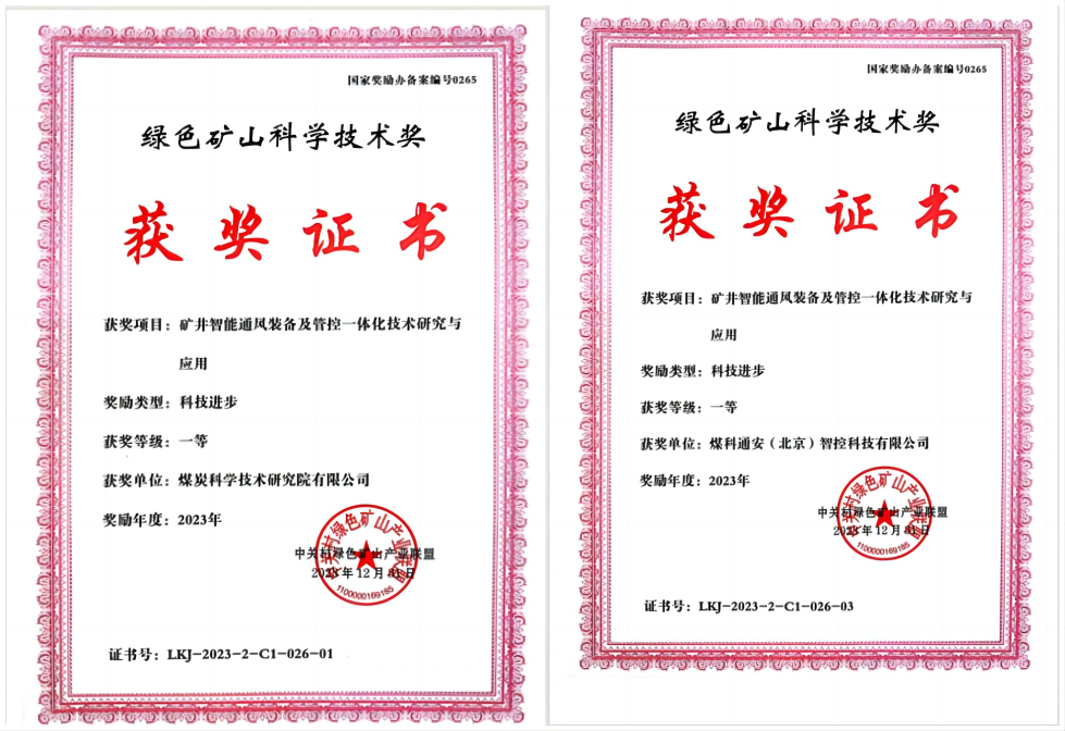 近日,第七届绿色矿山科学技术奖颁奖大会在北京召开。煤科院、煤科通安(北京)智控科技有限公司与乌海能源公乌素煤矿联合完成的“矿井智能通风装备及管控一体化技术研究与应用”荣获2023年度绿色矿山科学技术奖一等奖。