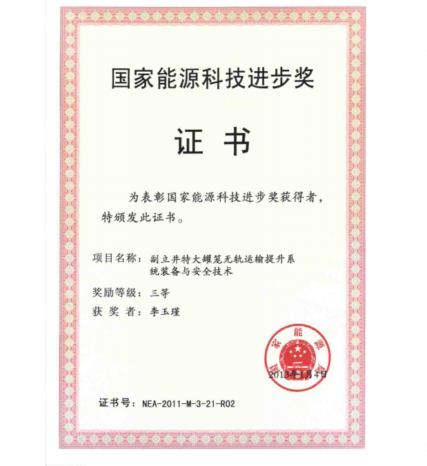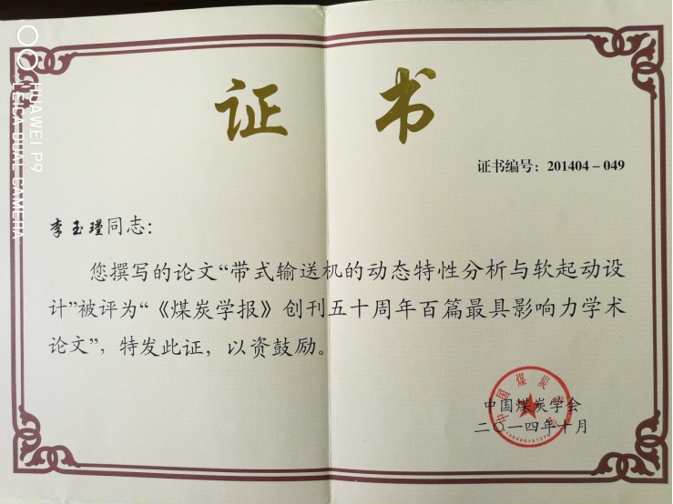 主持完成的科研项目“矿井提升系统安全运行核心技术研发”、“带式输送机动力学研究与限制振动应用技术”经煤炭工业协会科技发展部组织的国内知名专家委员会鉴定,达到“国际领先”水平。