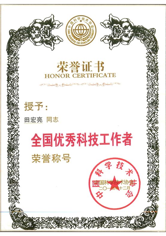 [5] 2014年获 “全国优秀科技工作者”荣誉称号