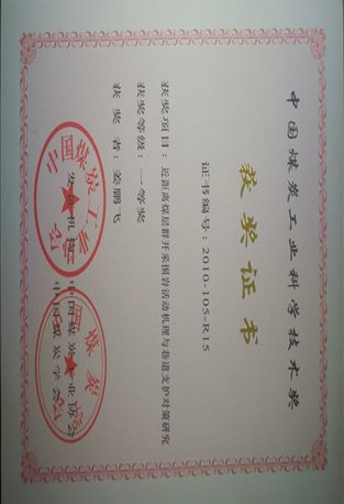 6、高应力巷道及坚硬顶板定向水力压裂控制技术与装备,2013年,中国煤炭工业协会,中国煤炭工业科学技术一等奖,排名第13;
