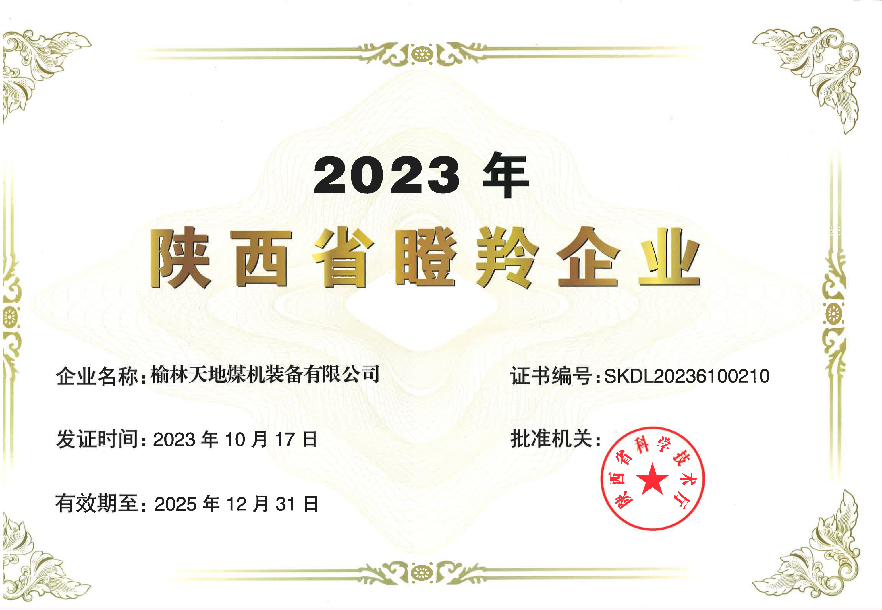 喜讯!榆林天地煤机装备有限公司成功入选 2023年陕西省“瞪羚企业”